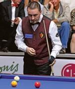 “They were both incredible matches, so many turnarounds and switches in momentum. That’s exactly what the new break does for you. I’m just glad it’s all over. When I reflect on this, I know I’ll be happy. Right now, I want to chill and get my head around it. One thing I do know already; No matter how long this tour nament goes on, I’ll always be the first to win “Theit.” fields are getting better all the time. To win nine matches in a row here is very pleasing and so is win ning two Matchroom events in the same year. That’s something any player would agree with, but I’m not the kind of person to settle. I want more.”  From his post-final demeanour, Ouschan needed rest, but it will not be on his laurels. In com mon with Filler, his victim in the Premier League final, and Van Boening, there is no room in his make-up for easing off, for com placency, for basking in the glow of success. The elite are sustained only by constant vali dation. Having admirably leaned on cussed de termination to beat the likes of Wojciech Szewczyk (10-8), Sanjin Pehlivanovic (10-7), Mateusz Sniegocki (11-7) and Delgado in the single elimination phase, all despite Delgado was Spain’s unlikely addition to the final four. Grabe (above) took the eventual champion to the hill, but scratched on the break, much to Ouschan’s suprise (left).