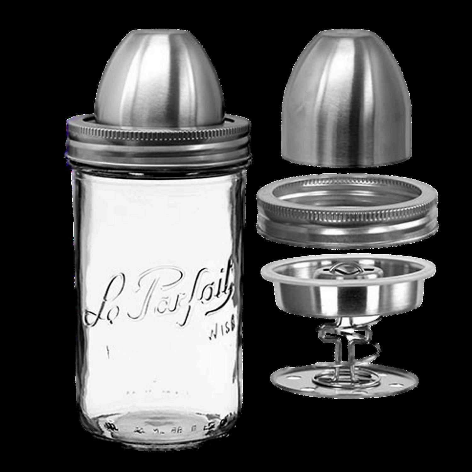 The stainless device top fits onto the following sizes of jars from Le Parfait, so make a custom batch today!