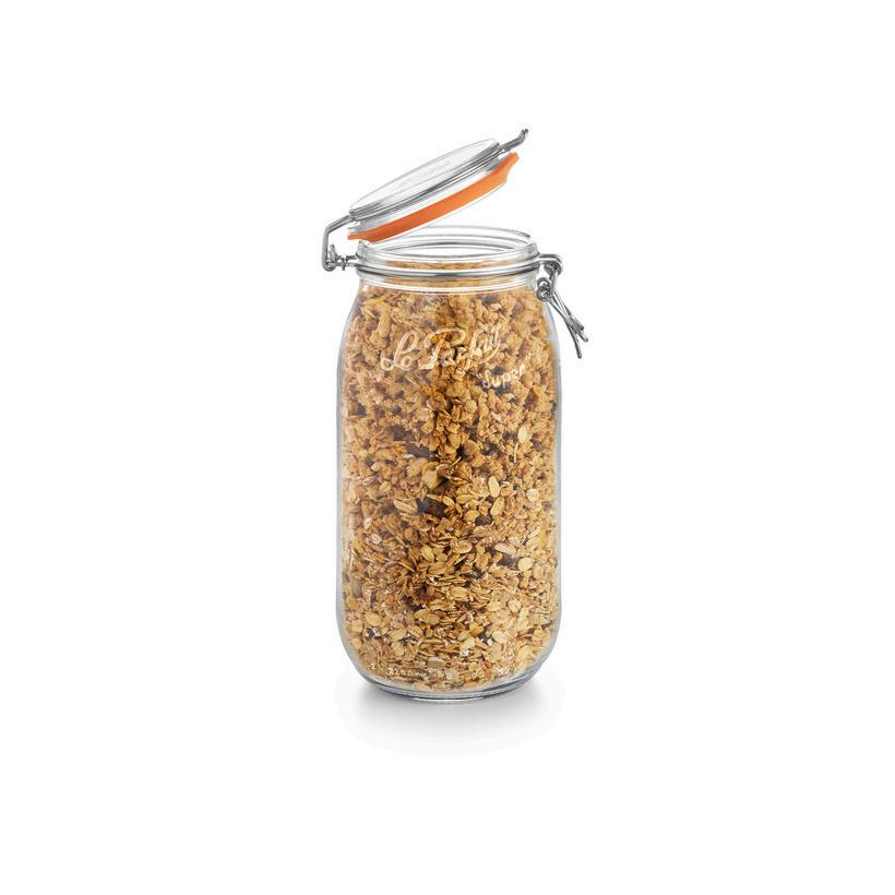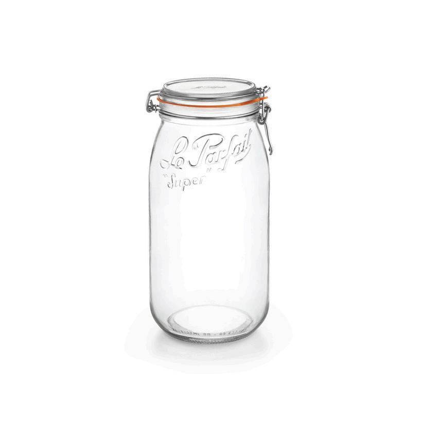 The rounded bodies and extra-widemouths of Super Jars allow for easy access to food, and the attached glass lid and rubber seal system provides an airtight and watertight seal for the contents inside. Chefs worldwide demand these jars for canning preserves, freezing herbs, storing bulk pantry goods, serving up homemade soups or reheating refrigerator leftovers.
