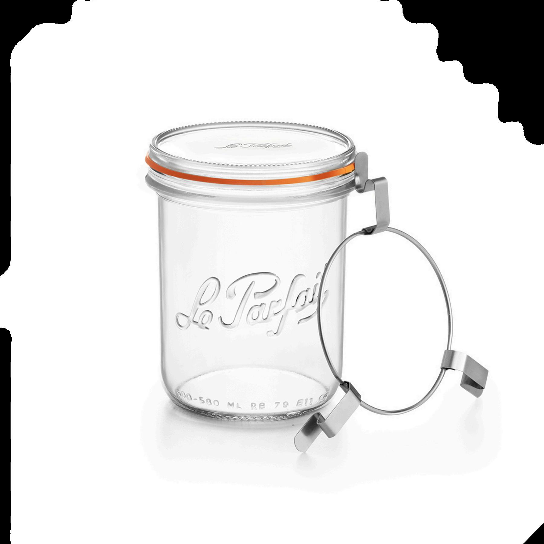 The revolutionary new design of Le Parfait Bistrot Jars utilizes a removable glass lid and wire ring with integrated clamps, combining functionality and convenience to provide a truly versatile lifestyle jar. Chefs worldwide have discovered these jars for water-bath canning, airtight refrigerator and pantry storage, and maintaining the freshness seal of meals-on-the-go.