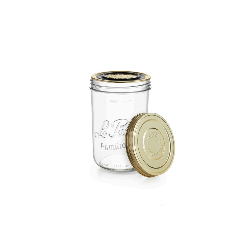 These jars utilize an extra-widemouth screw thread opening that allows for the colorful plastic lids to be interchangeable with the Familia Wiss canning two-piece canning lid system. Chefs worldwide implement these jars for water-bath canning larger fruit preserves, infusing vegetables in oil, soaking cold brew coffee, hosting SCOBYs and organizing pantry baking staples.