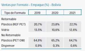 Al respecto, destaco nuestro compromiso por avanzar en materia de inclusión femenina y diversidad, en lograr que nuestras plantas sean Zero Water y continuar incrementando el porcentaje de plástico reciclado en la producción de nuestros envases retornables, en Bolivia ya es un 30%.