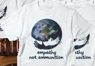 Empathy Not Ammunition. This t-shirt design against gun violence uses an image of earth centered on the United States. 2022.
