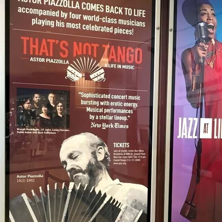 run of That’s Not Tango, a stage show about Astor Piazzolla, Key art and souvenir program cover for the Lincoln Center the controversial Tango composer and bandoneon player. 2019.