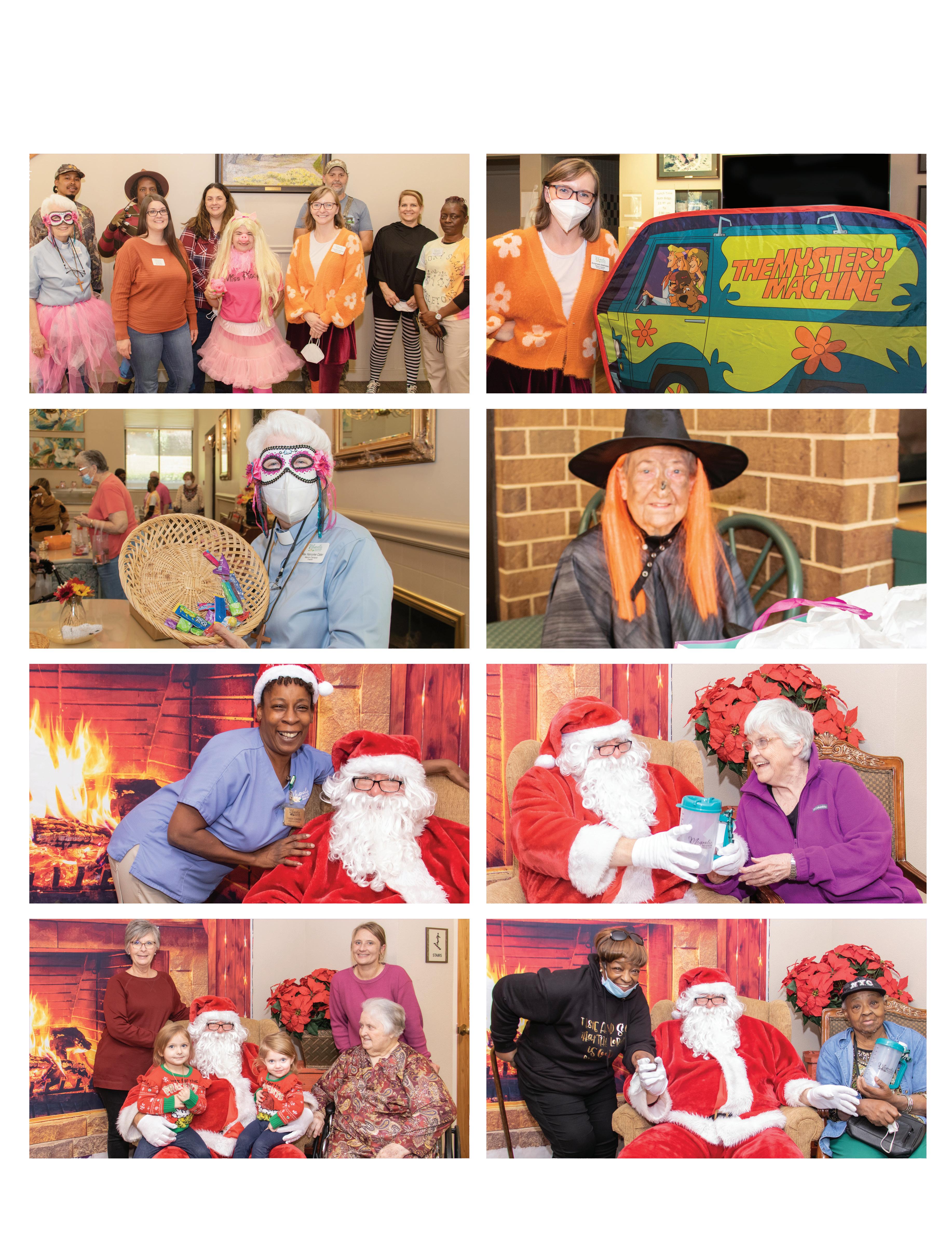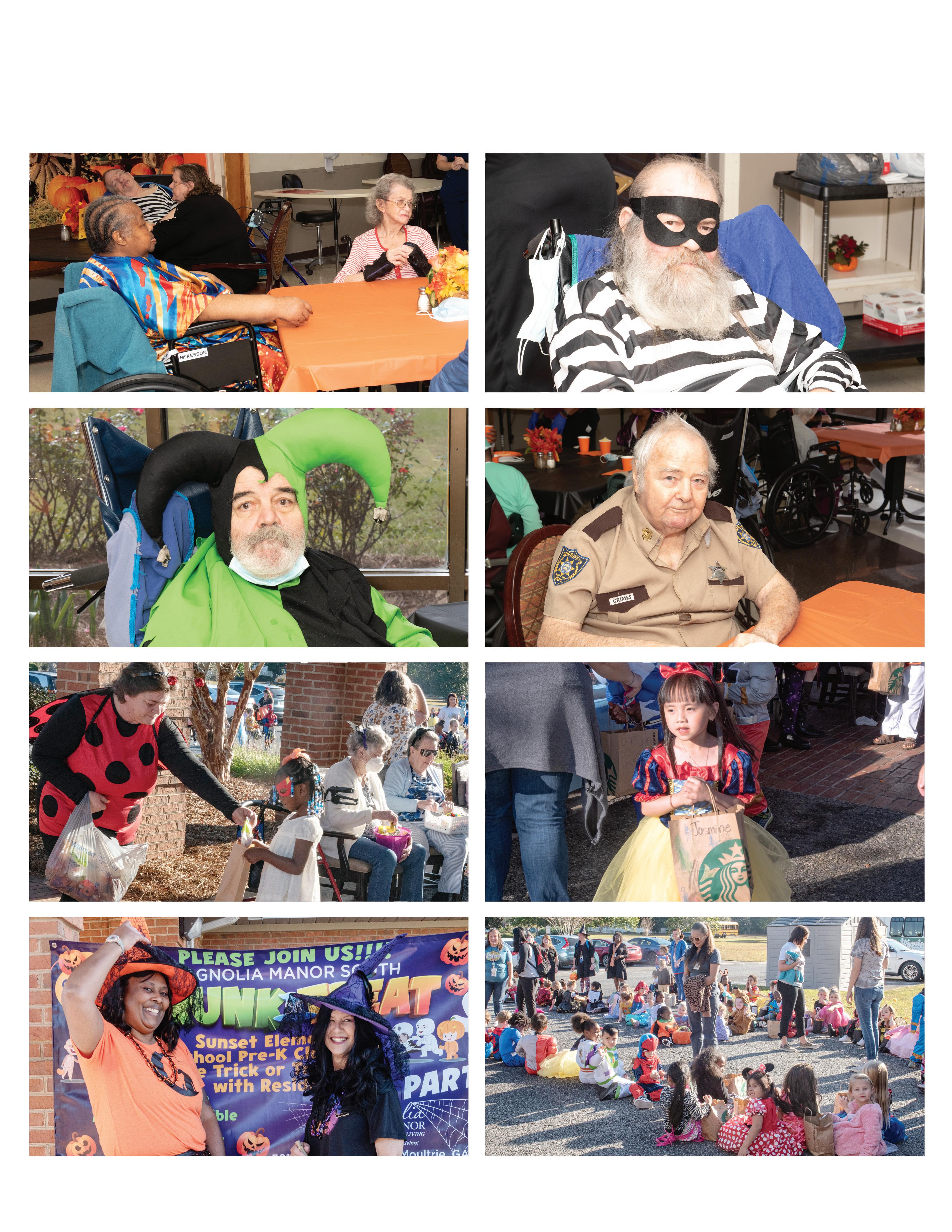 Along with these articles, you will read about others who served our residents well and closed their long careers with Magnolia Manor. This magazine also highlights a staff member who was recognized across the state for her service to our residents at Magnolia Manor of Marion County and staff members who spend an extraordinary amount of time every year turning their campus into a Christmas wonderland for our residents and their community. You will see photos of residents celebrating the changing of seasons with fall festivals, Halloween parties, Veterans Day programs, and other holiday celebrations.