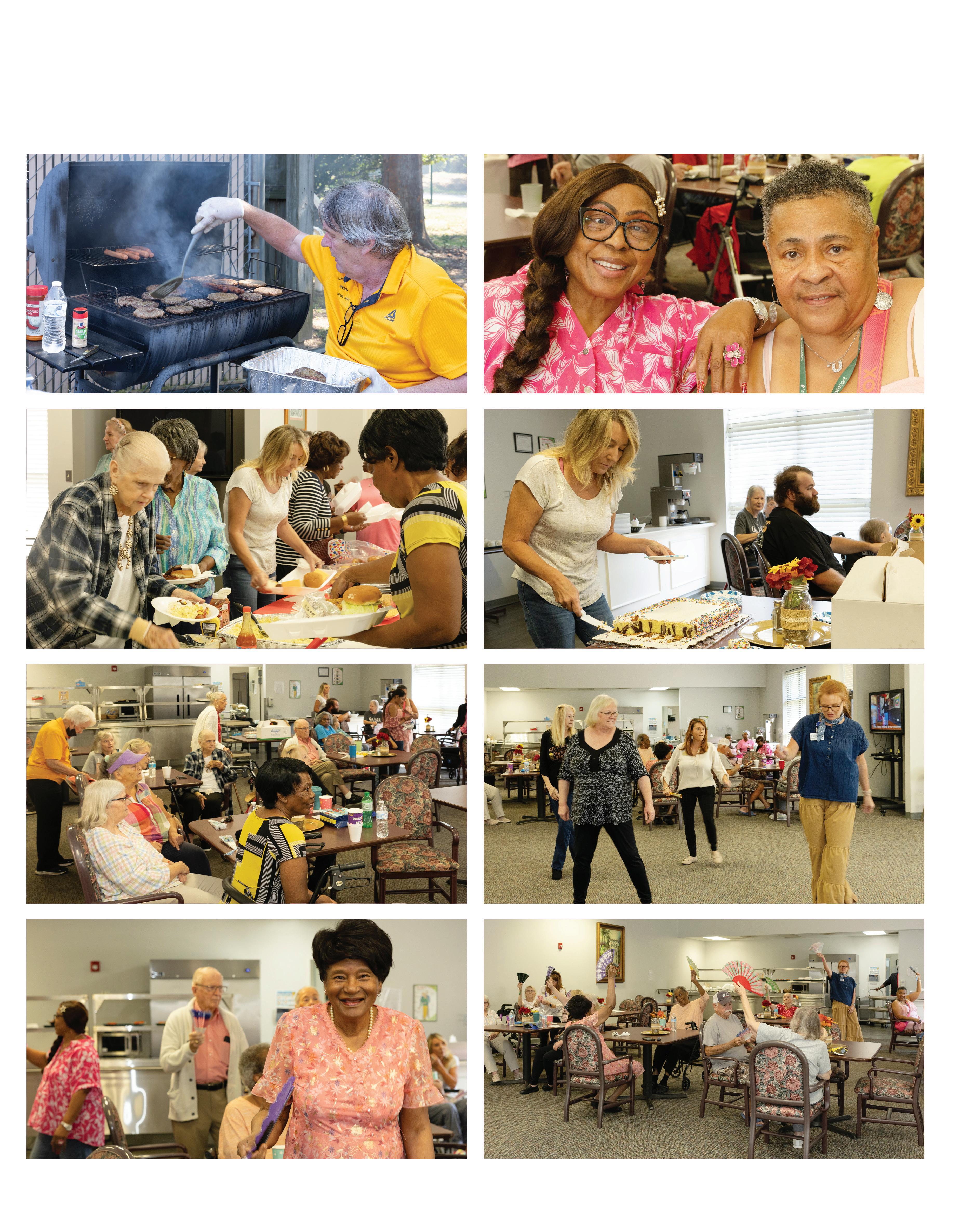 The friendships and acquaintances that started on these campuses have continued to grow and thrive into lifelong relationships. These community connections create ripple effects that benefit our residents, employees, and others. In this edition of Manor Living, you will read about Kris Knost, our VP for Nutrition Services, and see how she is dedicated to enhancing our dining experience and making it a hub for our residents to be connected while sharing a meal together. You will see how Lloyd Flanders, a resident at our Richmond Hill campus, connected with and educated her students. Norinne Peek, a resident at our Marion County campus, shares her experience as a 3-time cancer survivor. Donja Tripp, a resident and volunteer, shares how our Americus Nursing Center residents connect with and spread joy to children across the world through their involvement in Operation Christmas Child. Also, you will read about our Mattie H. Marshall Memory Care Center Family Support Group and how they lean on each other as they share deep, meaningful experiences.