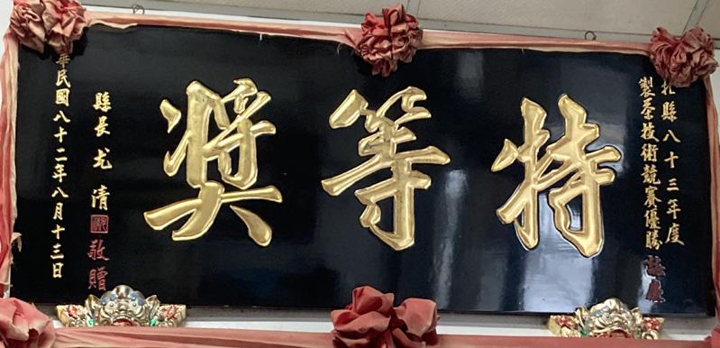 價格差,因此需要靠茶葉收益較佳的春天平衡 損益。後來於民國98年茶改場邱垂豐副場長 的指導及三峽區農會的幫助下,茶行開始在夏 秋兩季改做蜜香紅茶,一做就是十二年,更先 後榮獲民國九十七年第一屆紅茶冠軍以及代表 三峽參加的民國九十八年全國紅茶製茶技術競 賽亞軍。 黃老闆說道,天芳茶行從過往完全批發, 現今走向精緻化,參加各大比賽並藉著一次次 獲獎建立品牌。於民國八十二年,天芳茶行獲 得他們的第一份殊榮——「臺北縣八十三年度 製茶技術競賽特等奬」。從第一次出賽至今, 天芳茶行已經拿了十三、十四次冠軍。 ▲ 於民國八十二年獲得的製茶技術競賽特等 獎,是天芳茶行最早也是最引以為傲的成就。
