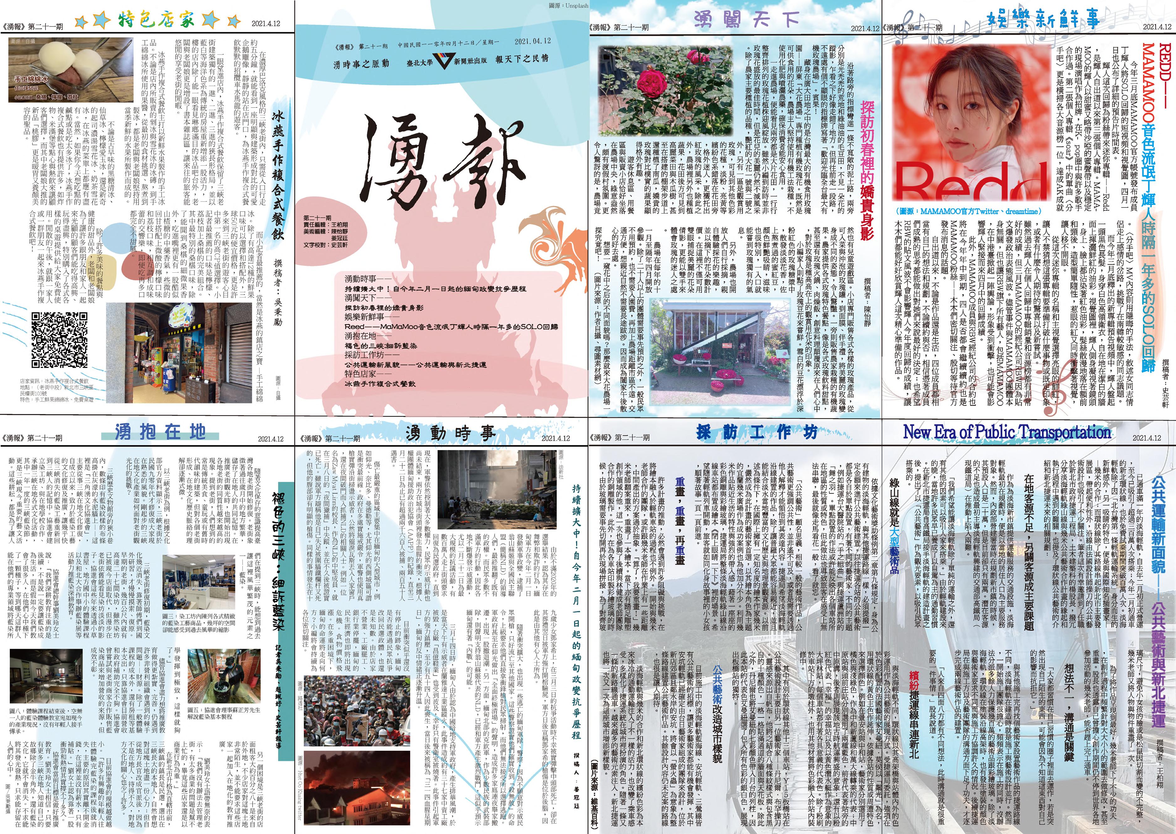 新聞編輯製作 News Production 新聞社地方文史刊物《三峽誌:茶思逸想》 台北大學新聞社紙本刊物《湧報》 2021.4第二十一期 褪色的三峽 細訴藍染