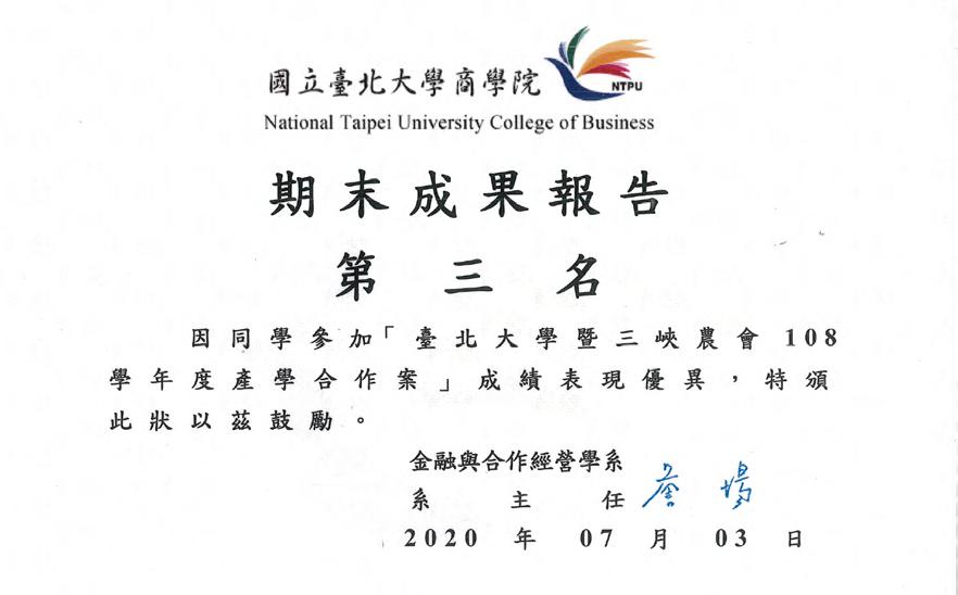 三峽農會行銷企劃專案 在修習北大企管系「行銷學」課程時,與三峽農會與在地農民進行產學合作,運用關於行銷的知識與理論, 並運用影像和創意幫助三峽農會和農民進行小農產品的產銷。 期望透過課堂所學,幫助三峽在地的農民們進行產品開發與銷售,並且配合學生市場,進行產品批發販賣與 宣傳,幫助三峽的小農撫平疫情所帶來的衝擊與損失。 上圖為北大幸福畢典市集之平面海宣傳海報 以自媒體串連新舊三峽市鎮,為地方共榮製造一線希望 上圖為期末專案成果優異獲頒之獎狀 透過製作產品宣傳影片與文宣,我和團隊們成功的幫助三峽在地小農觸及並增加北大特區的新客群,達到貼 文觸及人數69000多人、各個合作農民的粉絲專頁追蹤人數皆有顯著的增長。 另外 配合學生市場,我們也 負責批發產品並進行販賣與宣傳,最後也 獲得了貼文觸及人數6000多人,總銷 售額約為1萬的成績。 最後策展了北大幸福畢典市集活動,幫助農友進行產品開發與銷售,獲得了約3萬的利潤額,成功的幫助三 峽的小農撫平疫情所帶來的衝擊與損失。 批發三峽在地農產品並進行販賣與宣傳 此為三峽農會鮮農直賣所販賣之產品 此為三峽農會鮮農直賣所販賣之產品 18