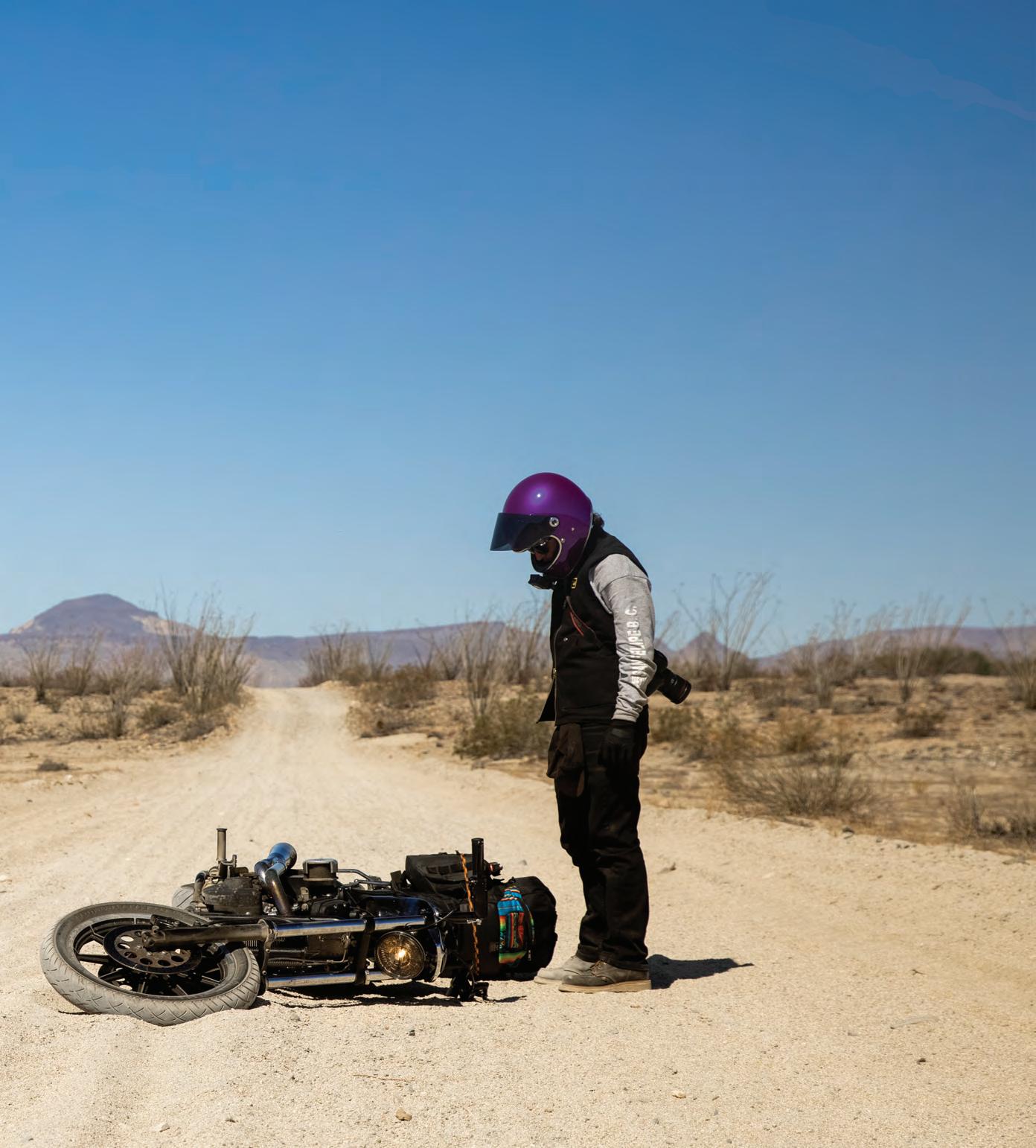 Wake up about seven a.m. from the dogs scratching to go to the dog park. Feed all the animals outside—that takes about 15 minutes— then I head to the race shop to rack my brain on how I’ll finish six new enduro builds in a month before the Biltwell race. I typically get home around seven and do ranch stuff with my lady ‘til we crash.