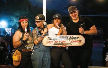 Roll a joint, win a prize. Build a righteous chopper, win a prize. Pop a blood vessel in an armwrestling mismatch, win a prize. What we’re trying to say is, everyone’s a winner at the Kernville Kampout. If not everyone, at least these lucky fools. Special thanks to “Hot Dog” Pete for painting this year’s skateboard trophies.