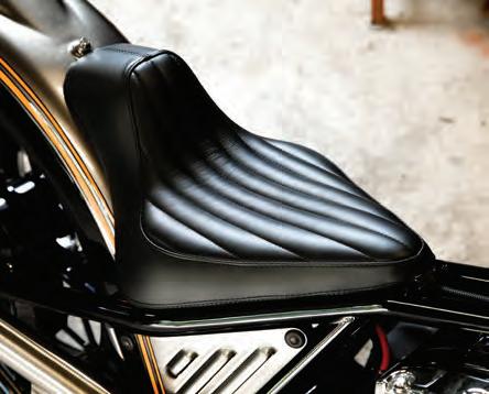 Classic H-D fuel tank silhouette is shaped to provide leverage while standing. It also creates the visual “crown” on top of the Revolution Max 1200 powertrain.