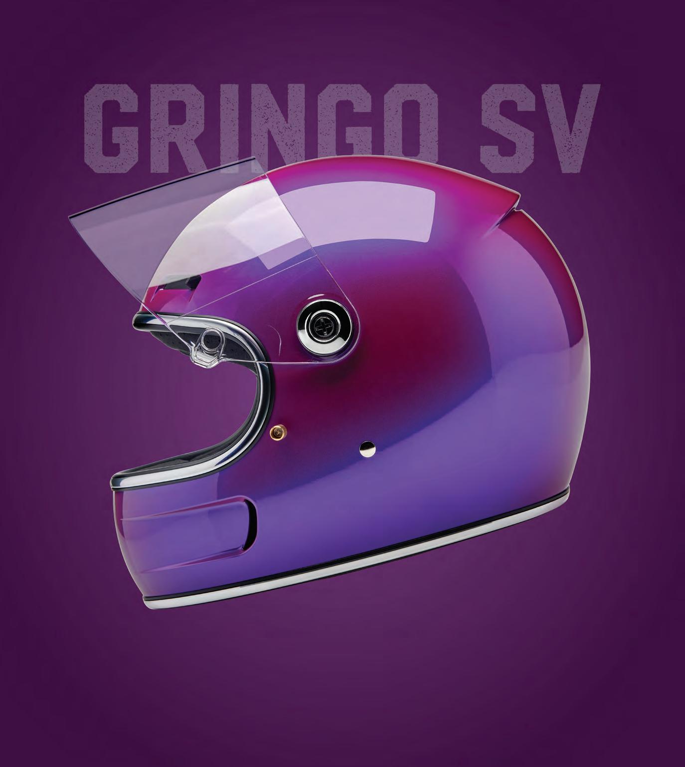 year our all-new Gringo SV will be the first Biltwell helmet to receive Europe’s new ECE R22.06 safety certification. These new test protocols address a much wider range of probable loads and impact angles, as well as a whole new, higher set of standards for shield testing—everything from light transmission to permeability during impact. Of course, Gringo SV remains compliant with all US DOT standards for peace of mind on US highways.
