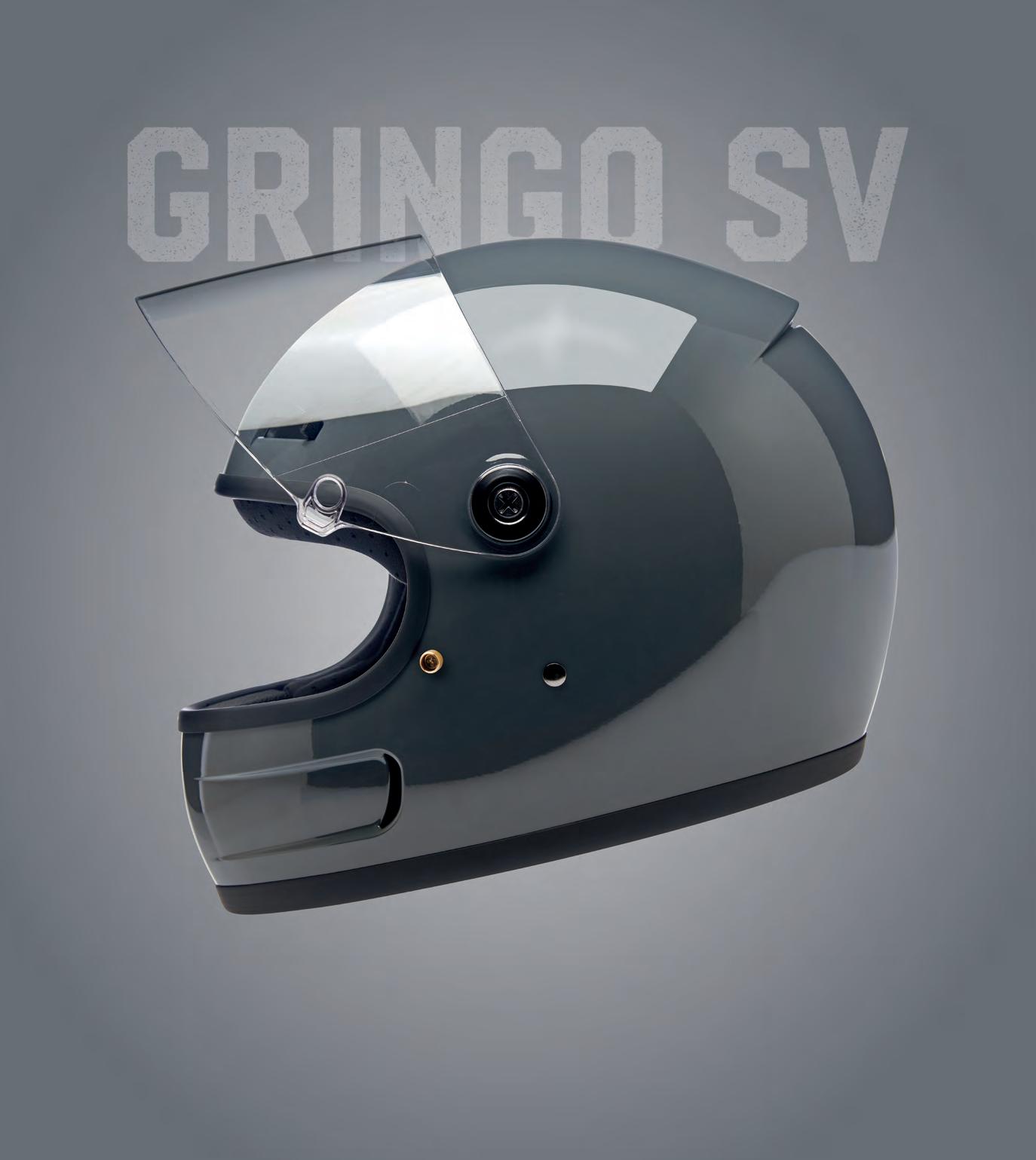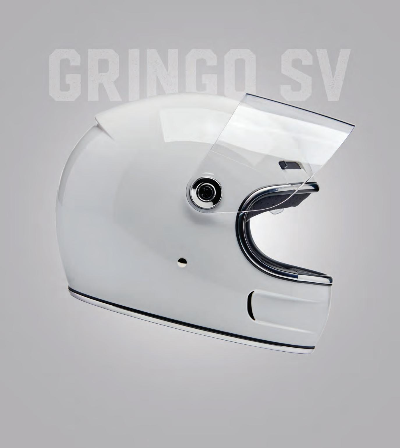 In 2014 we injected ‘70s motorsport DNA with advanced protective engineering to create Gringo, our first full-face helmet for motorcycles. Bikeriders rejoiced, and the retro/modern helmet revival was born. Several years later we added a polycarbonate shield to create Gringo S, then upgraded both models to meet ECE R22.05 standards. Today Gringo and Gringo S are two of the most recognized motorcycles helmets in the world.