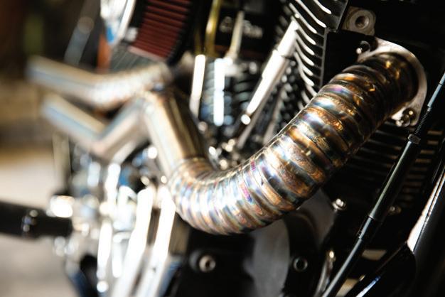 “It’s a Twin Cam with a six-speed transmission out of a bagger set in a twin top tube frame I designed and built based off old ‘80s BMX bikes. I got a long history with BMX… I’ve always liked the old BMX frame designs, and I thought it would make a nice chopper.”
