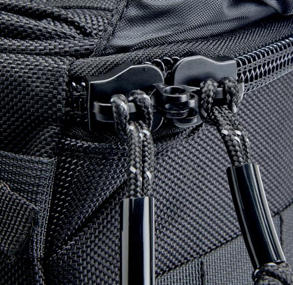 seat on most Harley-Davidson motorcycles, but universal fitment means EXFIL-36 will practically fit anything on two wheels if you’re motivated and clever. We engineer every piece of EXFIL moto luggage to be rugged and reliable, and EXFIL-36 is no exception. From its heat-resistant canvas bottom to the paracord pulls on its heavy-duty nylon zippers, every mil-spec textile, rust-proof buckle and hand-crafted stitch is built for toughness and years of reliability.
