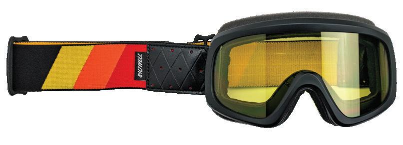 Our premium goggle for high-performance riding. Low-profile, injection-molded polyurethane frame features a highly impact-resistant, optically precise polycarbonate lens with anti-fog treatment for maximum protection and visual clarity. Like every Biltwell goggle, Overland’s woven—not screenprinted—strap features anti-slip silicone strips to stay secure on your helmet. Hand-stitched synthetic leather strap mounts feature subtle branding and contrast stitching for a clean retro vibe.