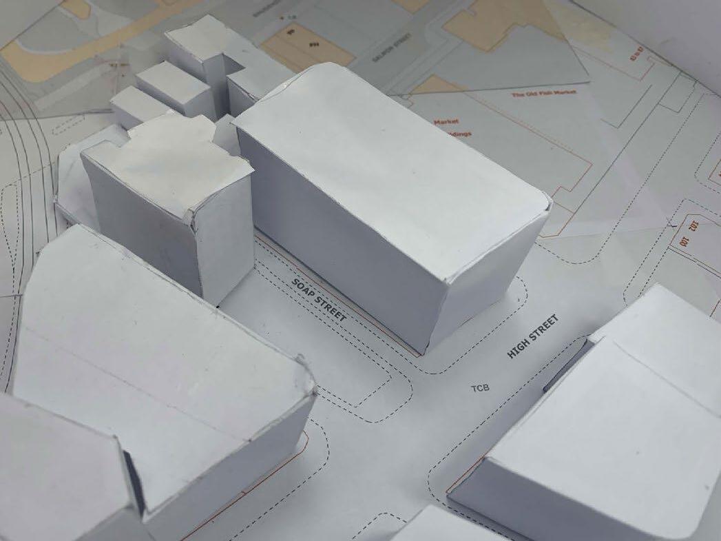 Hand-drawn sketches, photo collaged maps, daylighting and 3D model making with paper are just some of the tools used to describe the characteristics of a historical architecture site in Manchester.