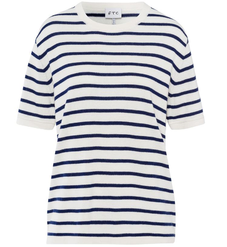 STRIK MED STRIBER OG KORTE ÆRMER FRA FTC CASHMERE.