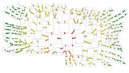 The vectors connecting the individual cells at each level are turned into line segments and zigzagged in a two-dimensional direction.