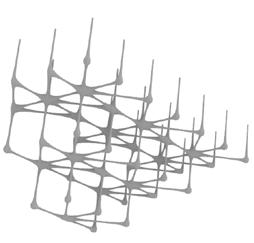The line segments connecting the individual cells at each level vary in length and number in the three-dimensional direction, enriching the form.