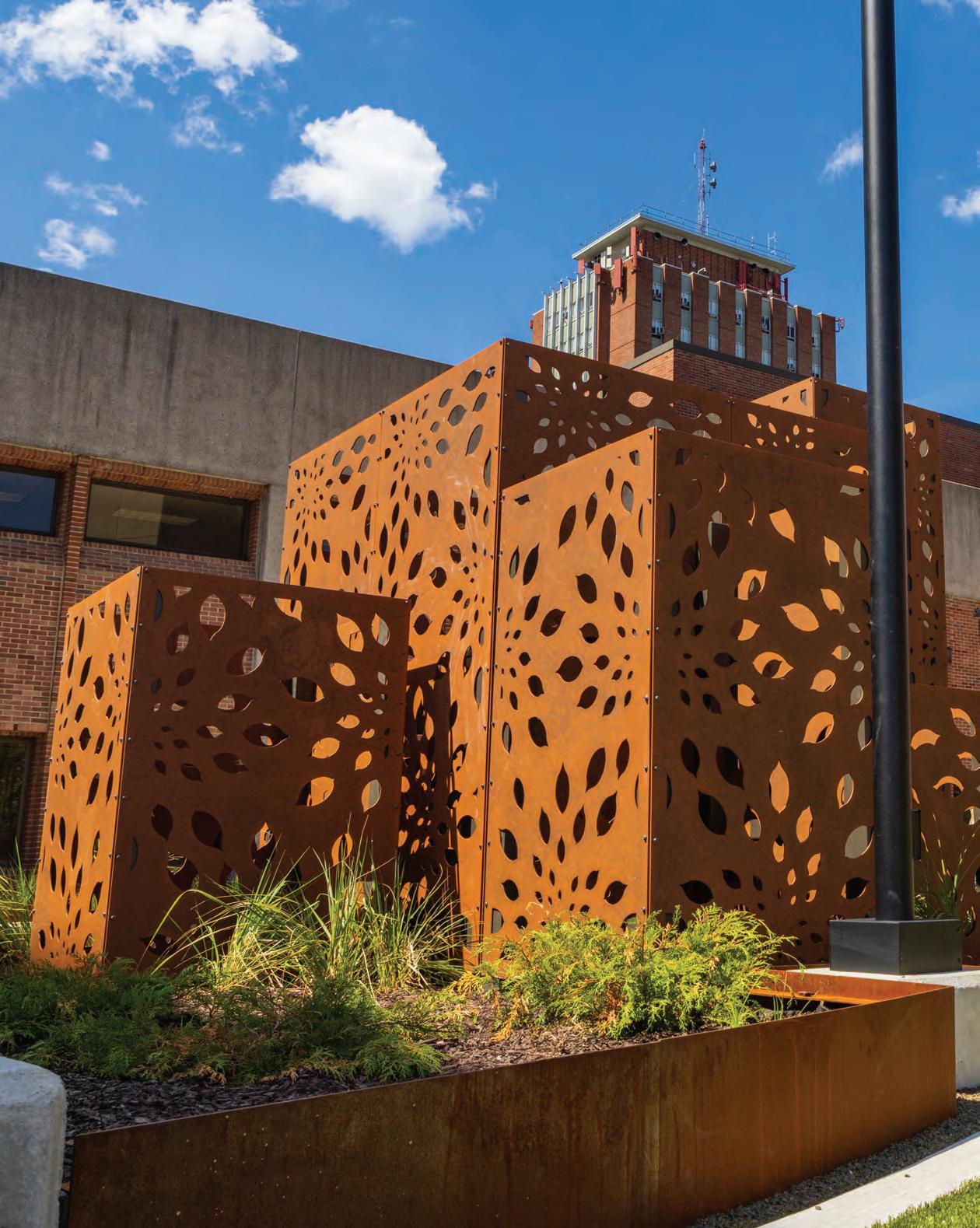 New art panels and turf have been installed on the Plaza Deck, the area that connects the University Union, the Glenn G. Bartle Library, the Technology Hub and the Engineering Building.
