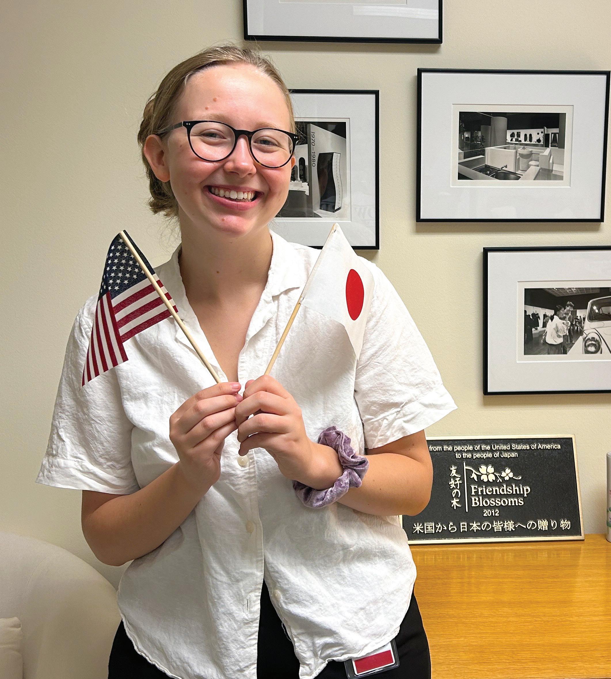Boog Internship support made it possible for Kelcie Alba ’25 to spend a summer in Washington, D.C., working with the Japan-U.S. Friendship Commission. The funding covered living expenses so she could focus on immersing herself in understanding the relationship between the two countries. She networked and gained valuable insight from Japanese diplomats and State Department officials. Kelcie also received help from the Fleishman Professional Development Fund to buy professional clothing vital to success in her role.