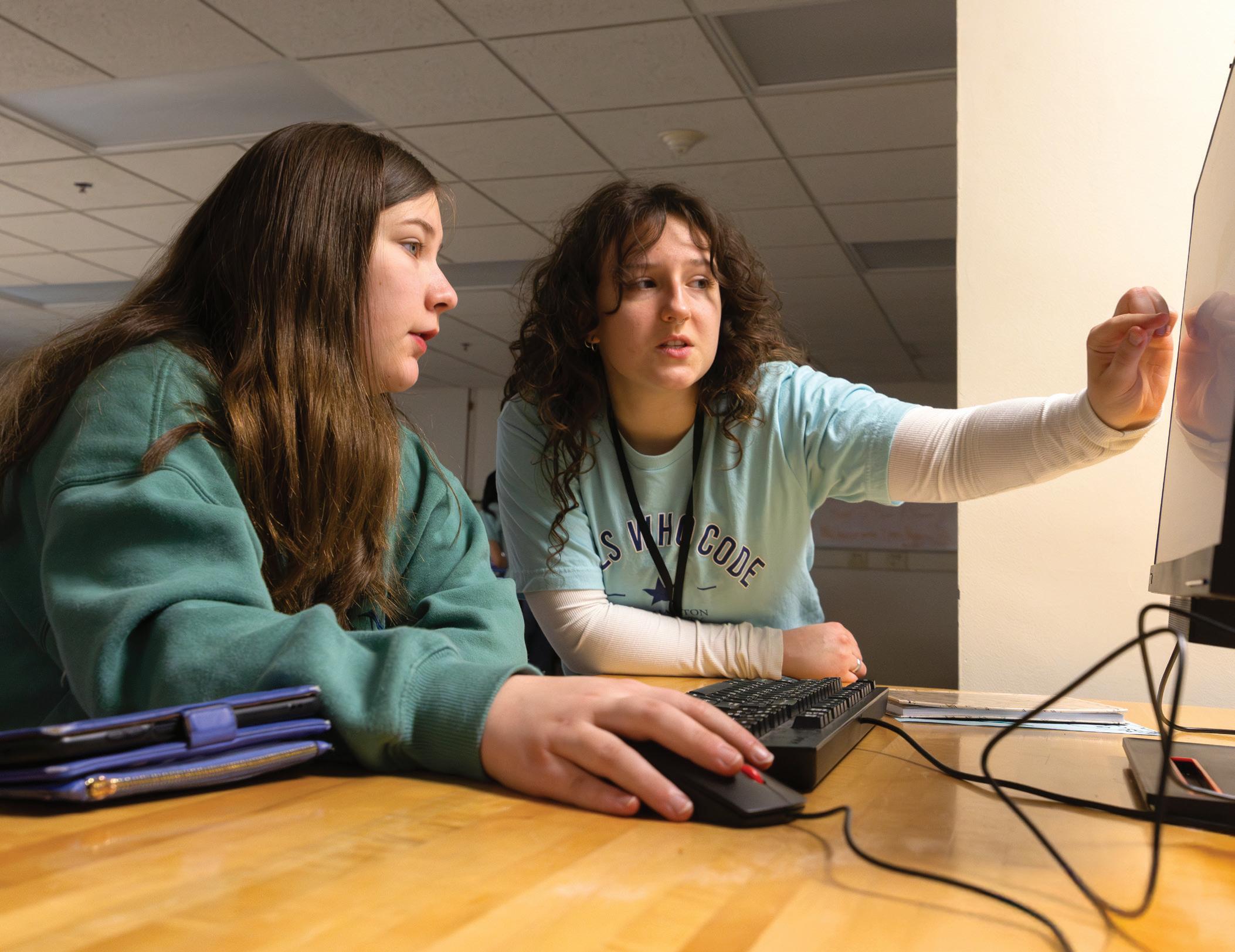 Since fall 2024, Students enrolled in Binghamton Codes! courses have access to a new Binghamton Codes! Center, located across from the College in the Woods Library. The program, launched in 2020 and established by James B. Bankoski ’91 and his wife, Heather, teaches the basics of programming to students of all majors and even if they have no prior experience with it, helping close the gender and racial gap in technology. Their generosity also supports Binghamton’s digital and data studies minor, the most popular minor at the University.