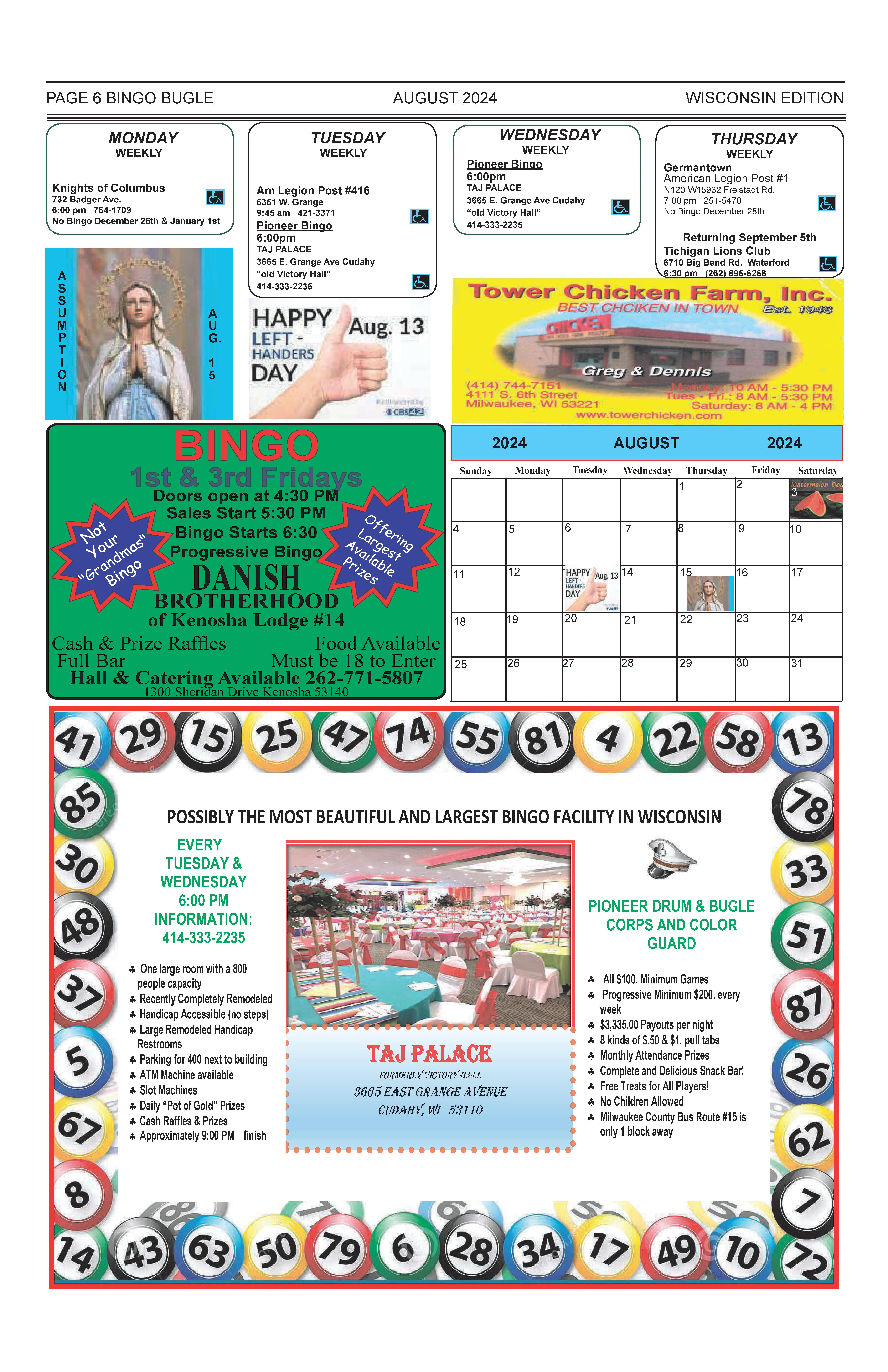 August 2024 Wisconsin Bingo Bugle