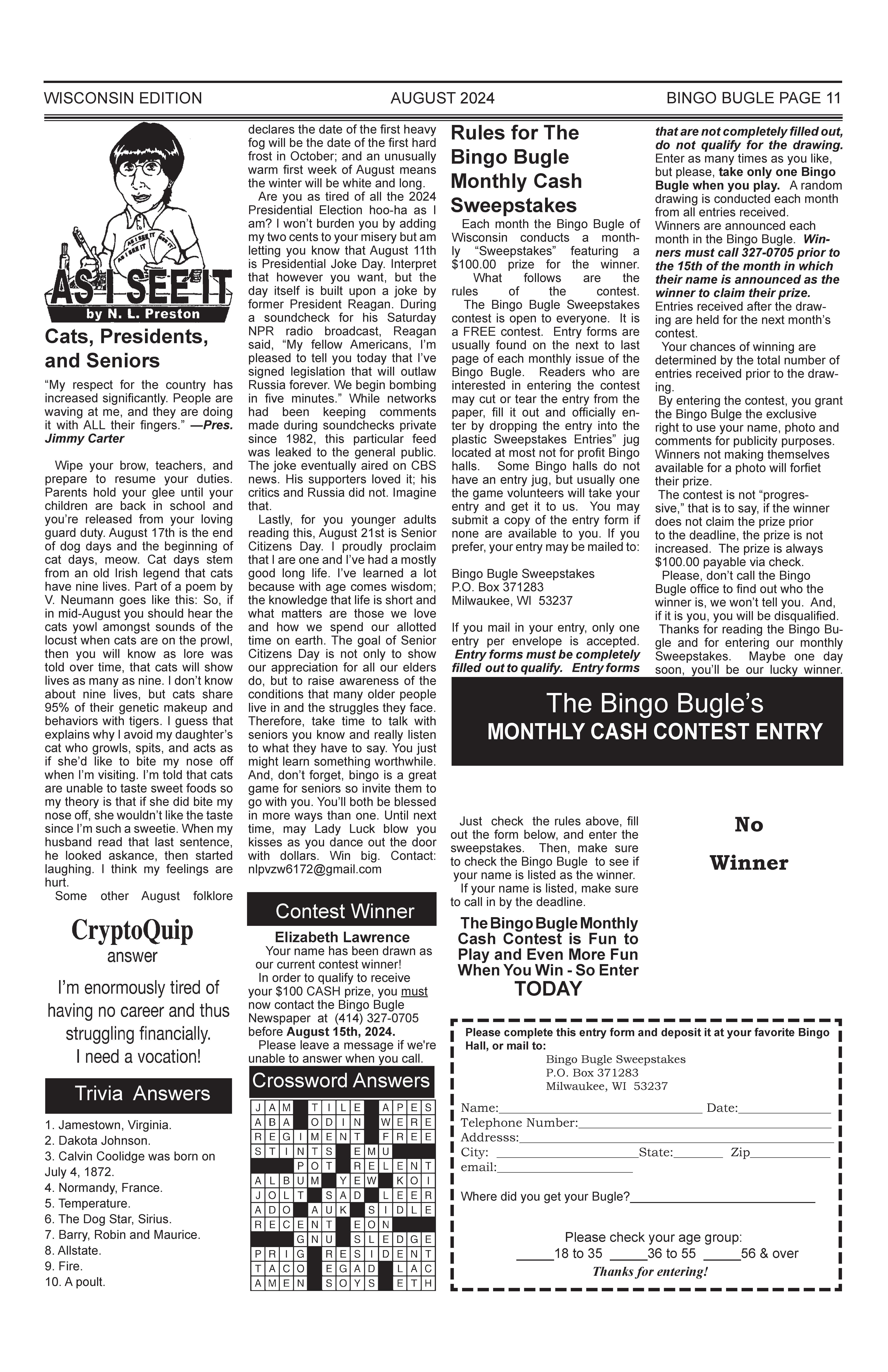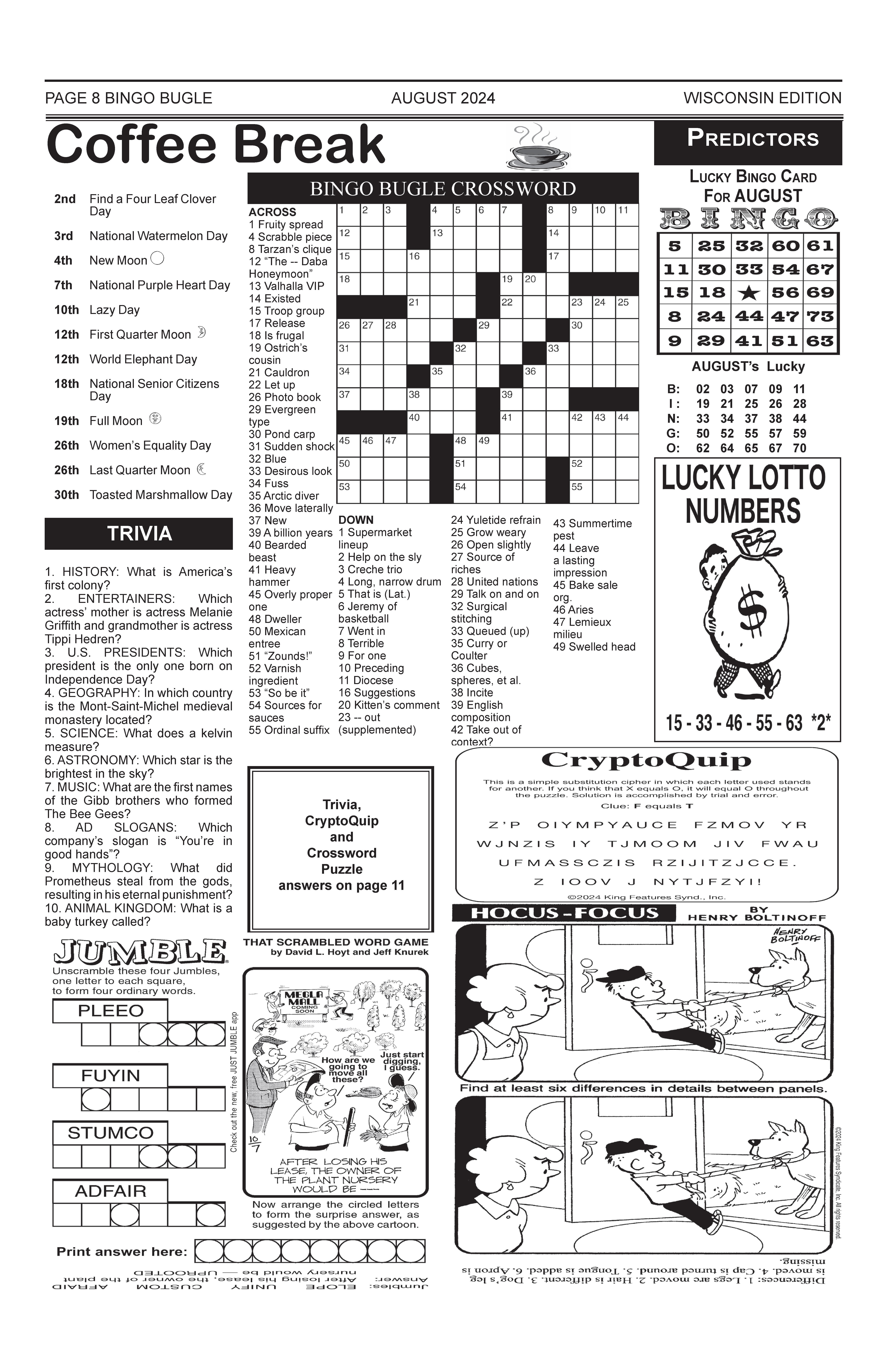 August 2024 Wisconsin Bingo Bugle by Bingo Bugle of Wisconsin - Issuu