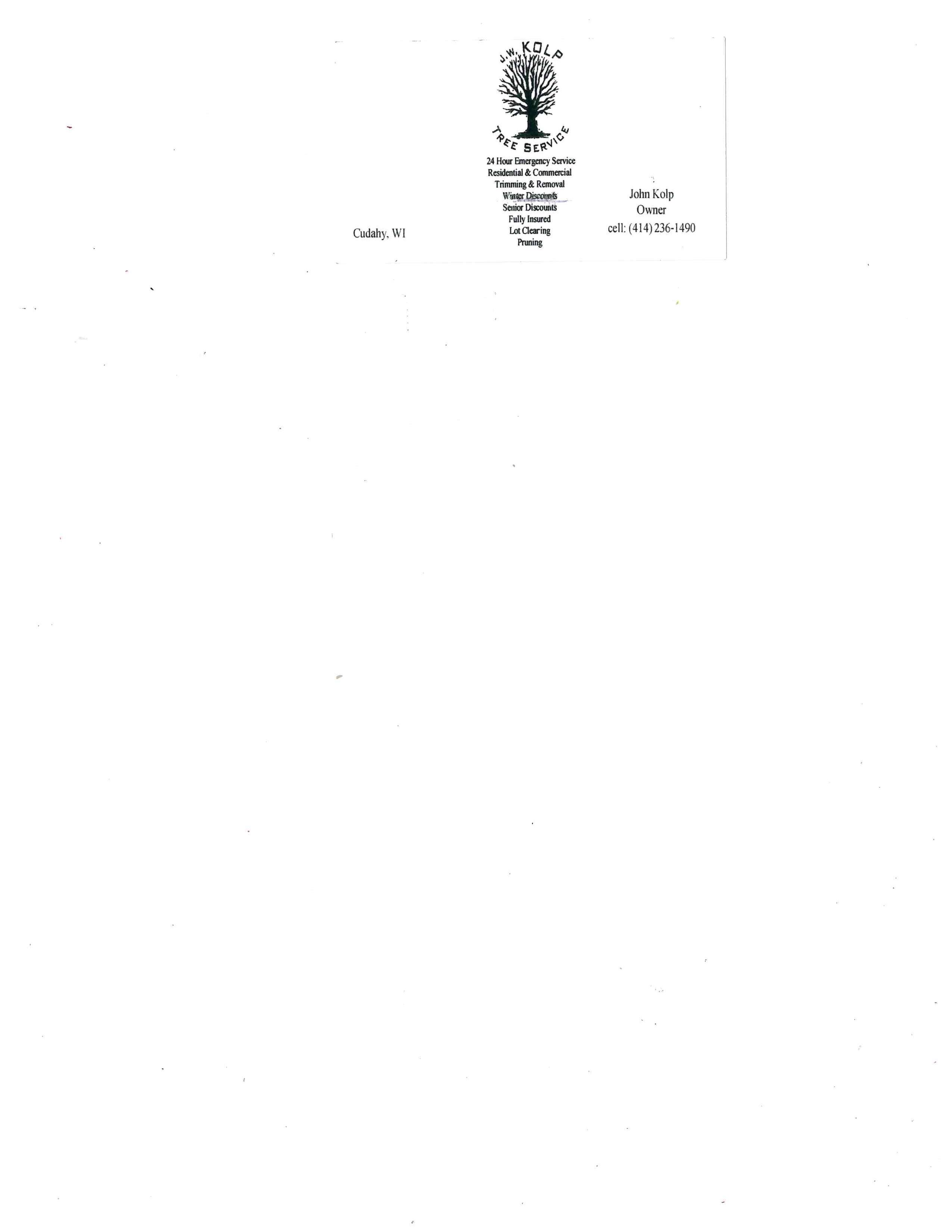 BINGO BUGLE PAGE 9 WISCONSIN EDITION FEBRUARY 2023 Cabinets & Countertops/Small Remodels Cell 414-403-7606 3803 East Martin Avenue Cudahy, Wisconsin 53110 JWKOLP 24 Hour Emergency Service Residential & Commercial Fully Insured Serving Milwaukee & Racine Area Lot Clearing John Kolp Owner cell:(414)236-1490 Place Your Ad Here For Maximum Exposure For Maximum Exposure