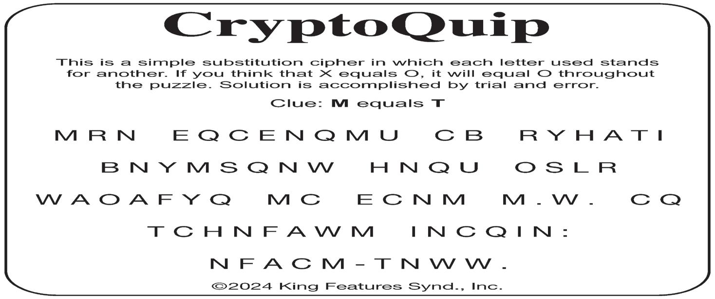 Trivia, CryptoQuip and Crossword Puzzle answers on page 11