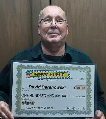 David Baranowski is October’s lucky winner of the Bingo Bugle’s monthly $100 contest. He picked up his winning copy of the paper at the South Milwaukee Knights of Columbus, where he’s a regular at Monday night bingo.