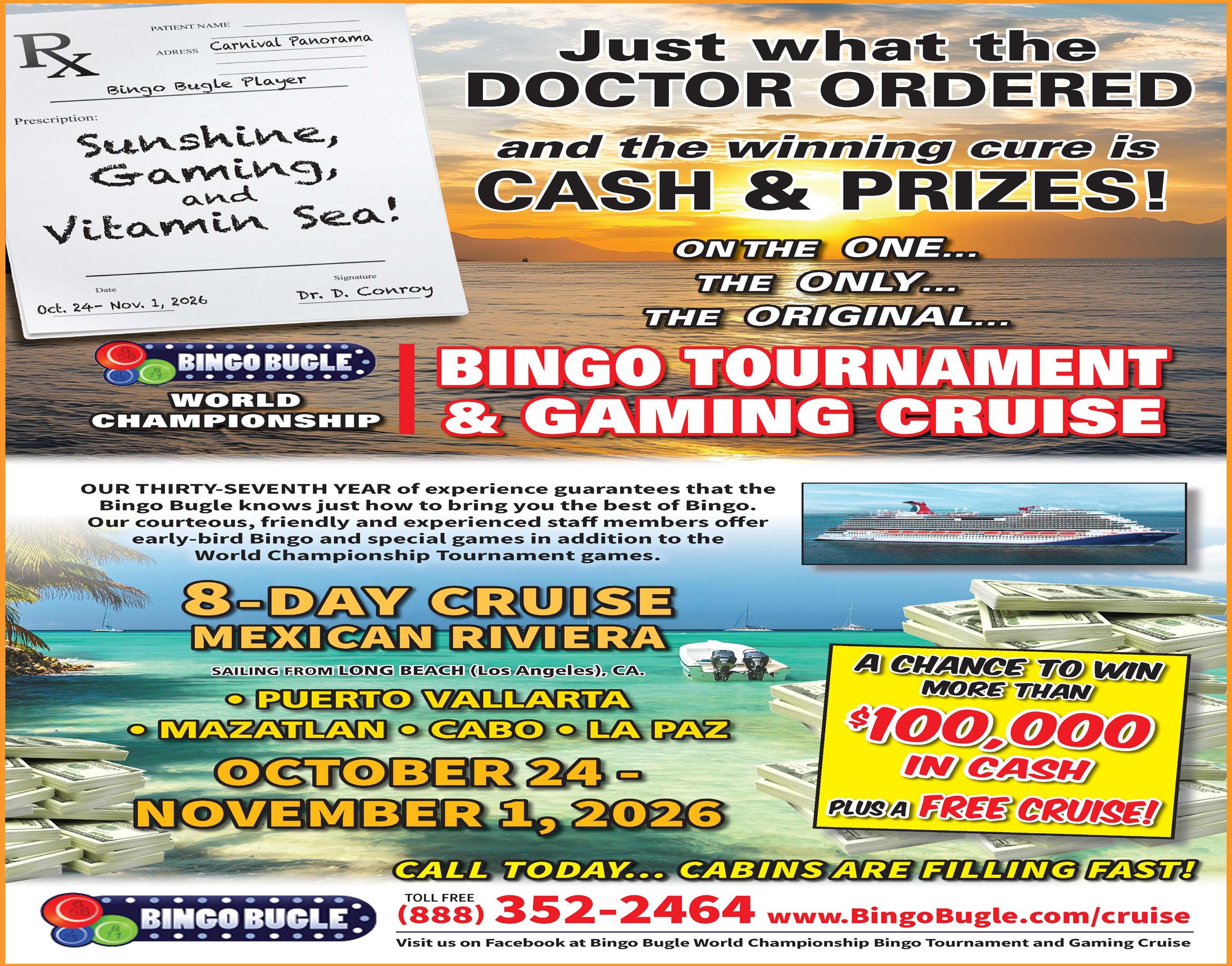 In order to qualify to receive your $100 CASH prize, you must now contact the Bingo Bugle Newspaper at (414) 327-0705 before November 15th, 2025. Please leave a message if we're unable to answer when you call.