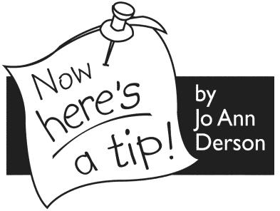 Send your tips to: Now Here’s a Tip, 628 Virginia Drive, Orlando, FL 32803.