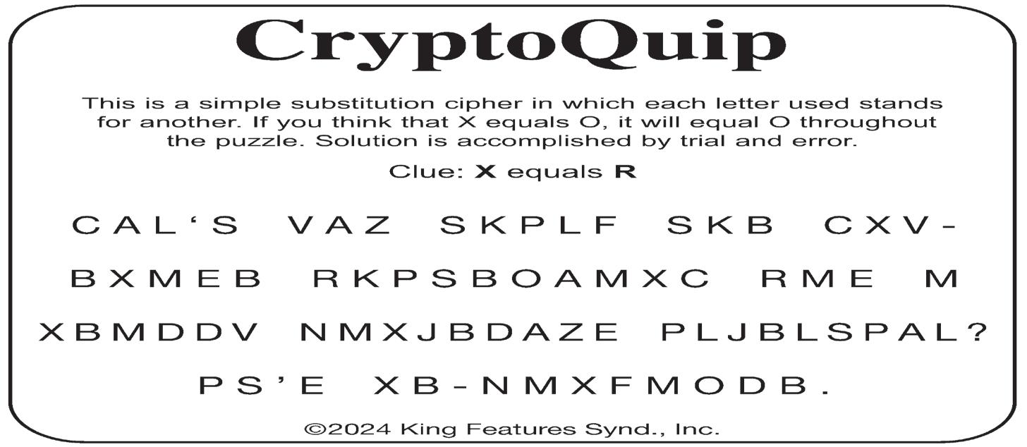 Trivia, CryptoQuip and Crossword Puzzle answers on page 11