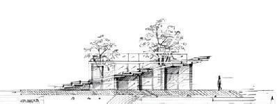 Each structure, a tribute to water’s diverse elements—some in form, others in facade. Roofs connect, creating a sheltered plaza, where light penetrates like gentle waves. This is more than design; it’s a symphony of nature and architecture, where every line echoes the calming flow of the surrounding waters.”