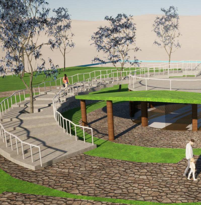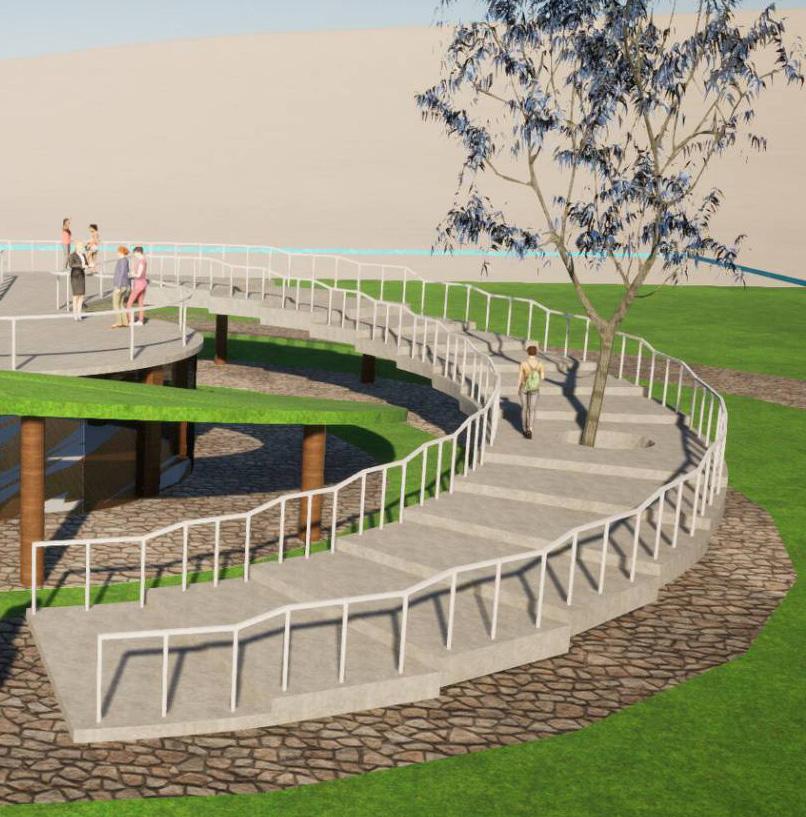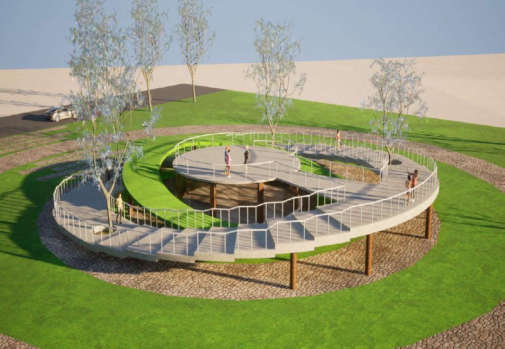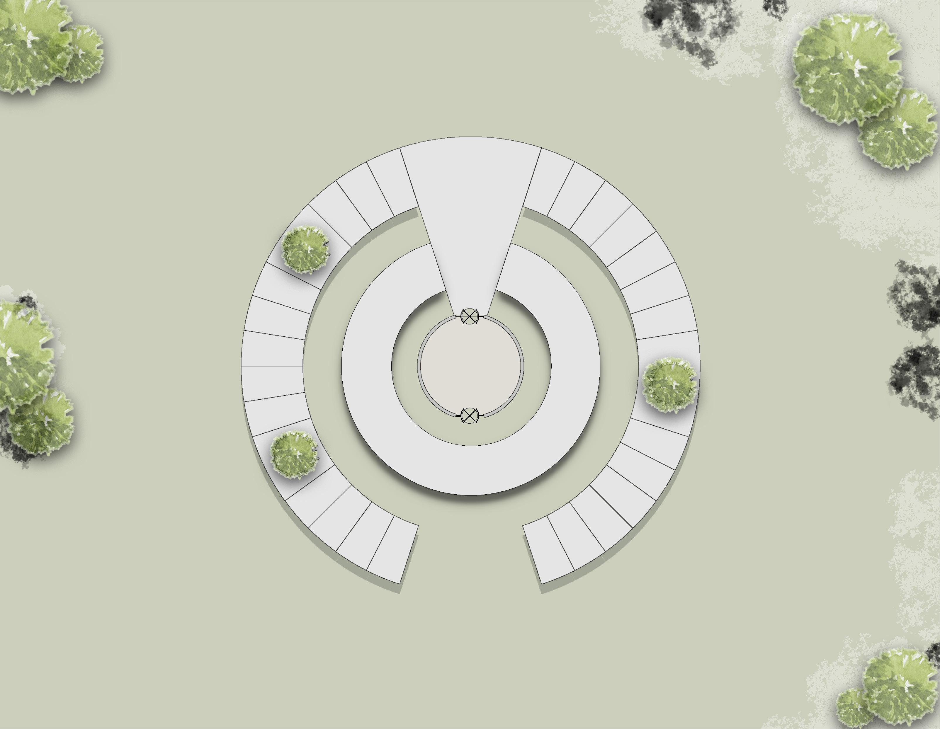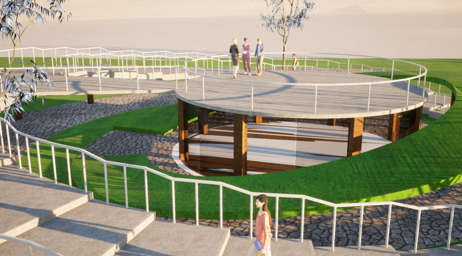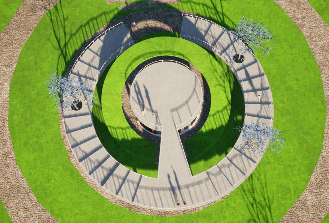 The circular amphitheater invites people for open engagement and will serve as a viewpoint.