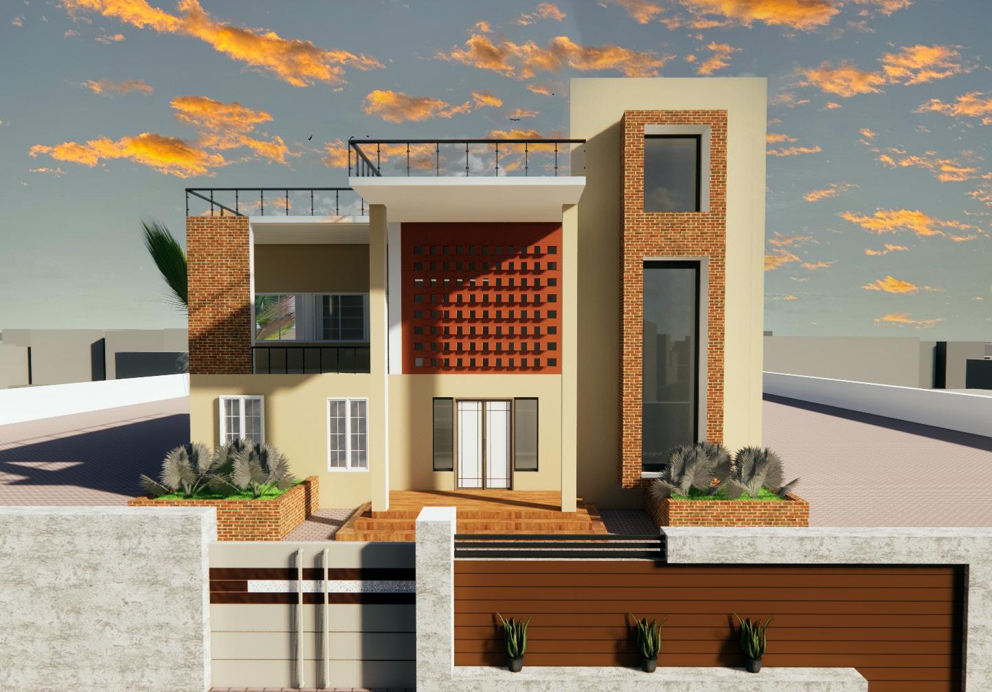 In the heart of Bharatpur-4, where climate dictates form, each facet of this residence becomes a canvas for innovation. Oriented towards the challenging West, the facade orchestrates a dance of raw and perforated bricks, balancing thermal efficiency with aesthetic appeal. This design narrative seeks equilibrium – a delicate interplay between solidity and openness