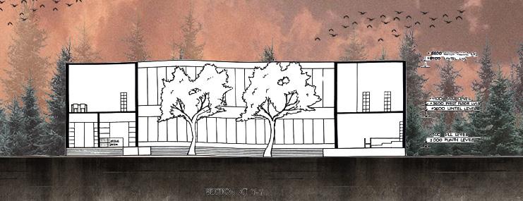 SECTION M-M (SECTION FOR MULTIPURPOSE HALL)