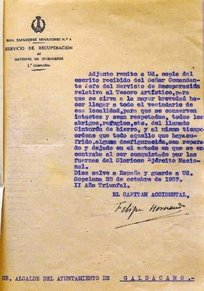Handik hilabete gitxira, urrian, Galdakaoko Udalak gutun bitxi bat jaso eban, Altxor Artistikoa Berreskuratzeko Zerbitzuko komandante buruarena, hain zuzen be. Eskaera argi bat egiten eban komandanteak: Burdin Hesia gorde eta babestea, be bai aterpe eta bestelako eraikuntzak, ahal danik eta ondoen eta arinen. Eta apurtuta egoana, konpondu, hori be eskatzen zan.