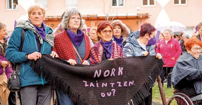 1.080 eurokoa izatea eta alargunek %100 jasotzea. Galdakaon batzen garen askok hori lortu dugu baina borrokatzen jarraitzen dugu, pentsiodun guztion eskubideak errespetatu behar dituztelako. Emakumeen kasuan batez ere, asko galtzen dute, hainbatek ez dutelako kotizatu eta haien senarrek kobratu zutenetik bizi direlako.