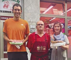 Urtzi Llarena (ezker) eta Bakarne Begoña Larrabe (eskuin) Xabier Harategiko Xabierrekin, opariak jasotzeko unean. Zorionak eta on egin!