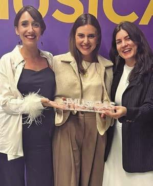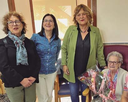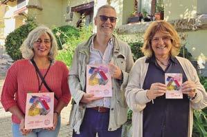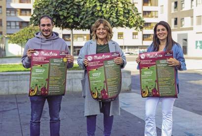 Itziar Legarretaetxebarria, Mari Cruz Okamika eta Ander Ibarra Izaskun Barbarias zinegotziarekin, 'Lasala 10 urte' obraz gozatzeko oparitutako sarrerak jasotzeko unean.