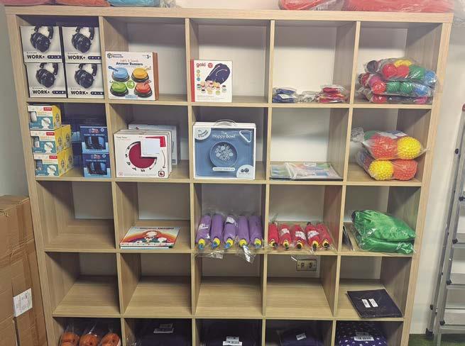 Laguntza kognitiboa eta irakurketa: Dislexian ematen den ikusmennekearen aurkako tresnak (irakurketaarauak) eta Ellie eskularrua, Disgrafiarako eta Dispraxiarako funtsezko euskarri ergonomikoa. Aisialdi terapeutikoa: pop-up zentzumen-dendak, lasaitasunbabesleku gisa, gorputz-kontzientziarako mugimenduarrabolak eta elikadura-aukeraketa lantzeko plater espezializatuak.