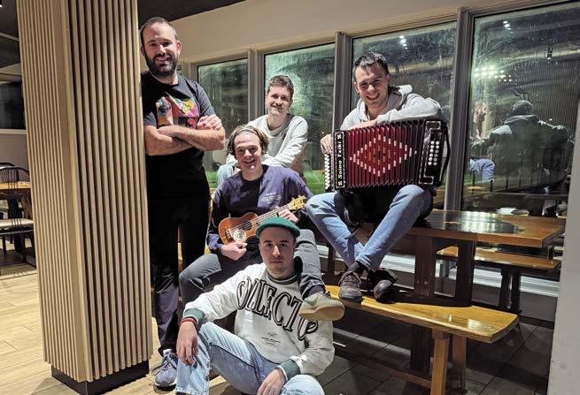 Talde ederra eratu duzue, kide askorekin. Zenbat instrumentuk osatzen dute taldea? Hamabi gara: Beñat Armentia Arriandiaga (gitarra), Unai Beitia Zabala (ahotsa), Mikel del Amo Manzanares (ahotsa), Ayyoub El Ghazzaly (panderoa), Jon Fuentenebro Berna (ahotsa), Endika Galarza Cisneros (ahotsa), Eneko Garaigordobil Rodriguez (bibolina), Unai Gomez Alzola (bonboa), Aitor Gomez Llavori (ukelelea), Iñigo Larrea Labarrieta (trikitixa), Aitor Muñozguren Zamakona (bibolina eta ahotsa) eta Unai Sarriugarte Lasarte (ahotsa).