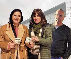Nerea Pereda eta Oskar Armentia Binkekideak Izaskun Barbarias Galdakaoko Udaleko zinegotziarekin, Maluta obraz gozatzeko oparitutako bina sarrerak jasotzean.