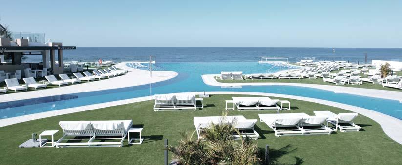 La piscina infinity, que parece fundirse con la inmensidad del Atlántico; su enorme solárium, donde elegir hasta cinco formatos diferentes de hamacas (sencillas, dobles, horizons, daybeds o balinesas), además de los originales y espaciosos cocoons ubicados en el Belvedere, un espacio en altura con vistas extraordinarias sobre el litoral de Arguineguín.
