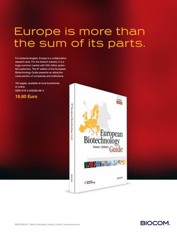 Europe is more than the sum of its parts. For biotechnologists, Europe is a collaborative research area. For the biotech industry it is a huge common market with 526 million potential customers. The 8th edition of the European Biotechnology Guide presents an attractive cross-section of companies and institutions. 164 pages, available at local bookstores or online. ISBN 978-3-928383-66-3