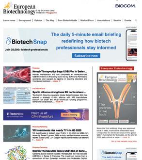 Europe in focus: european-biotechnology com is the fast track news and information portal for biotechnology and life sciences The compact reporting from the 27 EU countries plus Switzerland, Great Britain and Norway focuses on science, politics and business Fast news and attractive service sections such as a calendar of events and a job market create the perfect environment for target group-specific online advertising in the large European life sciences market